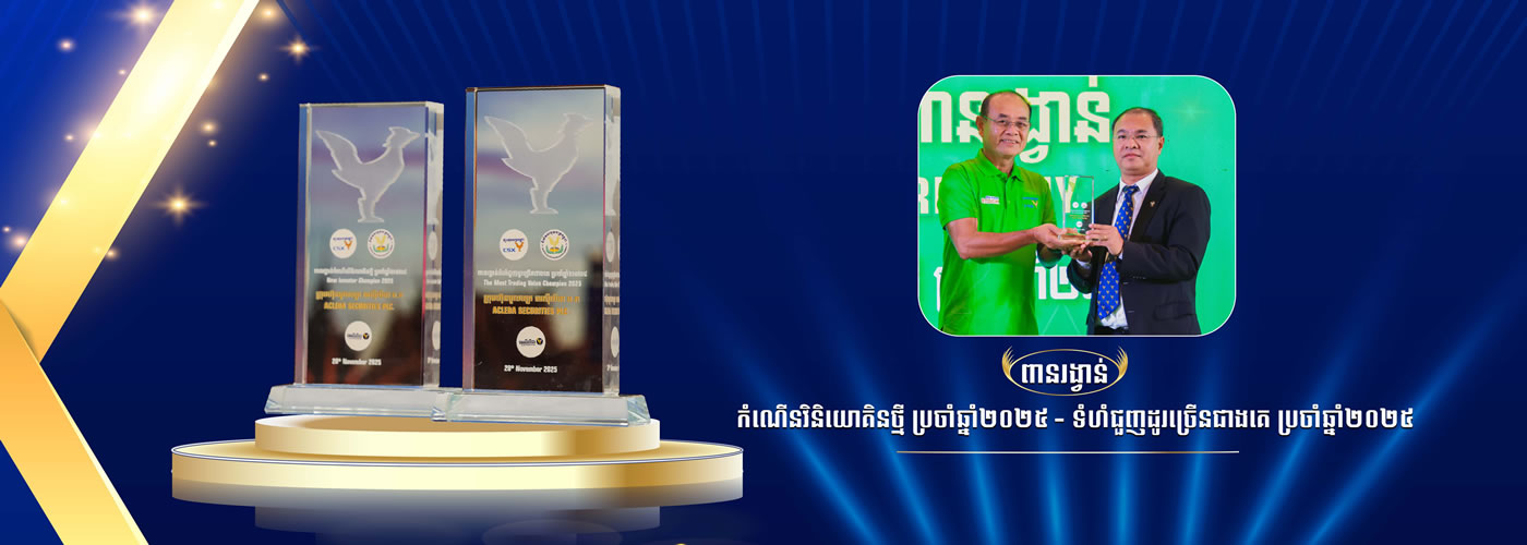 ក្រុមហ៊ុនមូលបត្រ អេស៊ីលីដា ម.ក ជាក្រុមហ៊ុនមូលបត្រដែលលោកអ្នកជឿទុកចិត្ត និងជាក្រុមហ៊ុនមូលបត្រឈានមុខគេក្នុងប្រទេសកម្ពុជា បានឈ្នះពានរង្វាន់ចំនួនពីរ គឺពានរង្វាន់ "កំណើនវិនិយោគិនថ្មី ប្រចាំឆ្នាំ២០២៥" និង "ទំហំជួញដូរច្រើនជាងគេ ប្រចាំឆ្នាំ២០២៥"...