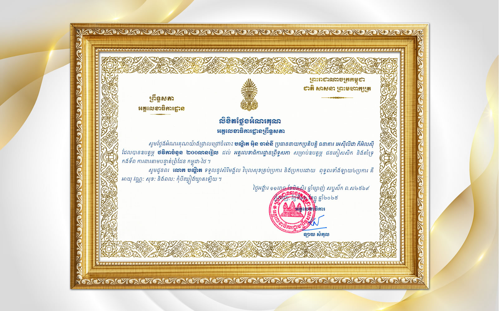 Appreciation letter from Phnom Penh Capital Hall.Charity . 2025