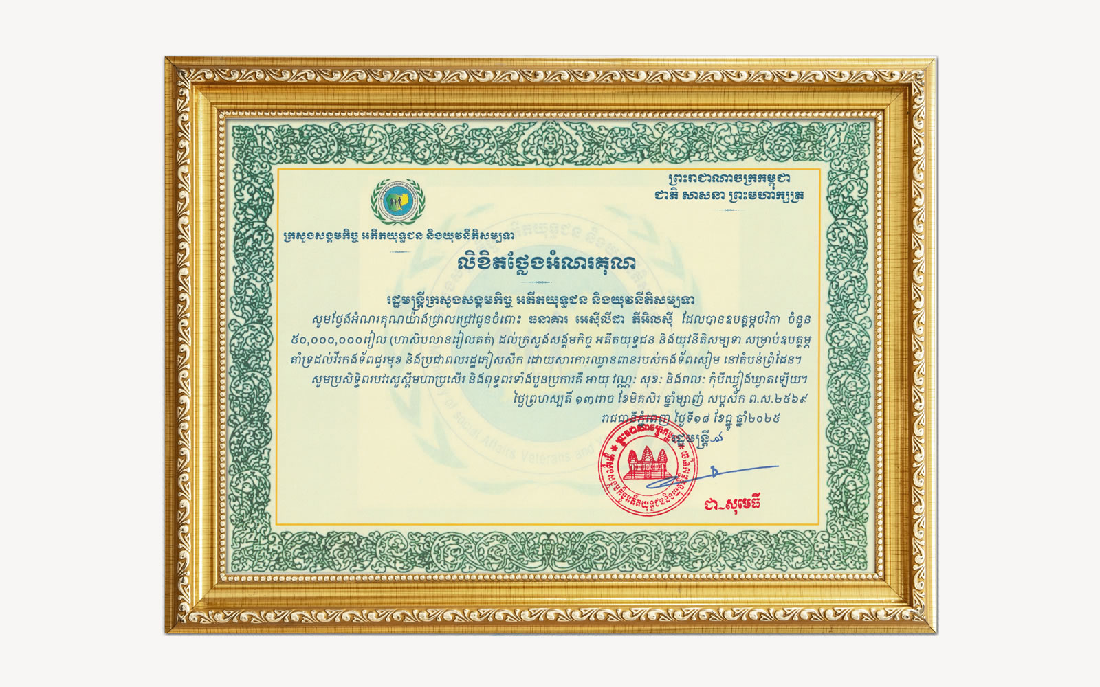 ACLEDA Bank Donates KHR800,000,000 to the Cambodian Red CrossCharity . 2025