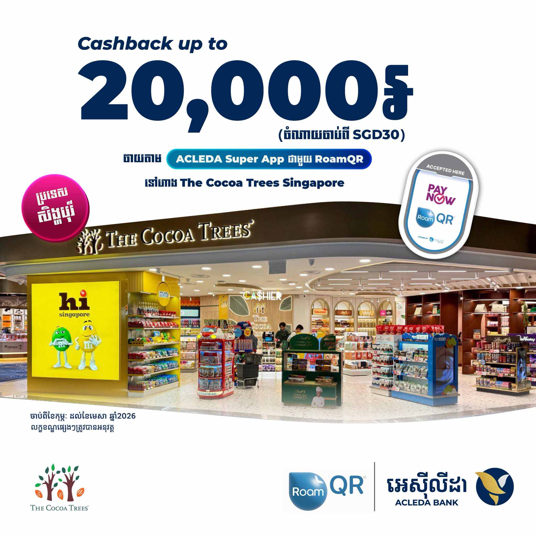 Applicable for all ACLEDA partners nationwide (Phnom Penh and 24 Provinces) from January to April 2026. Top 30 merchants in Phnom Penh and each province (total of 750 merchants per month) will get cash prizes! See more
