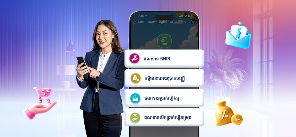Buy Now Pay LaterA digital loan service for customers to purchase goods/services in advance through AC Super App and repaying in installments to ACLEDA Bank later.