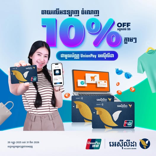 - ការផ្តល់ជូននេះ សម្រាប់ការទូទាត់តាមកាត UnionPay អេស៊ីលីដា ជាមួយម៉ាស៊ីន POS ដោយឆ្លងកាត់ប្រព័ន្ធ UnionPay