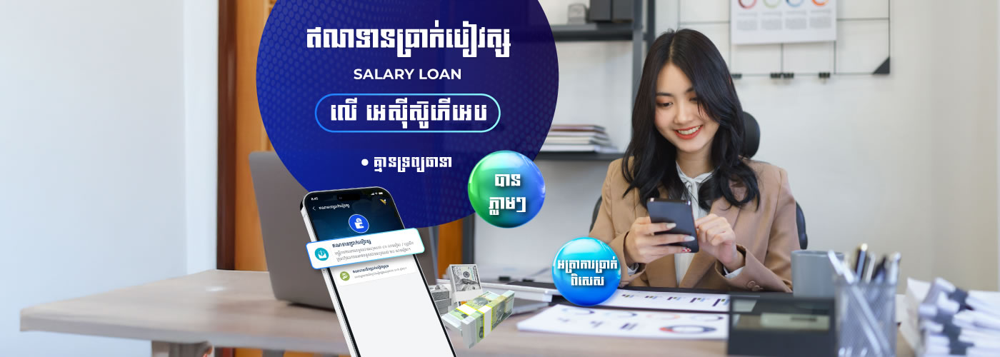 - ទំហំឥណទាន៖ ចាប់ពី ១០០.០០០រៀល ឬសមមូលជាប្រាក់ដុល្លារអាមេរិក រហូតដល់ ៥០% នៃប្រាក់បៀវត្សជាមធ្យម ក្នុងរយៈពេល ៣ខែចុងក្រោយ។