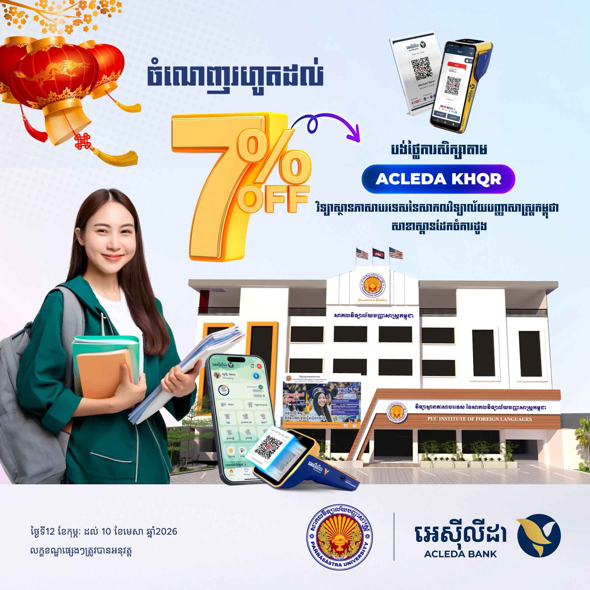 ផ្តល់ជូនសម្រាប់ដៃគូអាជីវករ អេស៊ីលីដា ទូទាំងប្រទេស (រាជធានីភ្នំពេញ និង 24ខេត្ត) ចាប់ពីខែមករា ដល់ខែមេសា ឆ្នាំ2026។ អាជីវករដែលមានអតិថិជនស្កេនទូទាត់ច្រើនជាងគេ ចំនួន30នាក់ នៅក្នុងរាជធានីភ្នំពេញ និងតាមខេត្តនីមួយៗ (សរុប 750នាក់ ក្នុងមួយខែ) នឹងទទួលបានប្រាក់លើកទឹកចិត្ត! មើលបន្ថែម