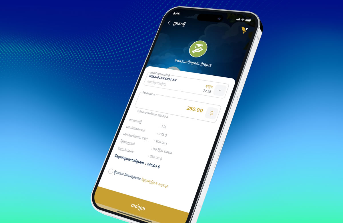 - បញ្ចូលចំនួនទឹកប្រាក់កម្ចី (ប្រព័ន្ធនឹងបង្ហាញទឹកប្រាក់កម្ចីអតិបរមា)