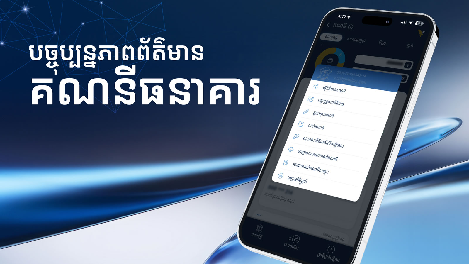 - ចុចលើ សញ្ញាចុចបី (more_horiz) នៅលើគណនីធនាគារដែលចង់ប្តូរព័ត៌មាន
