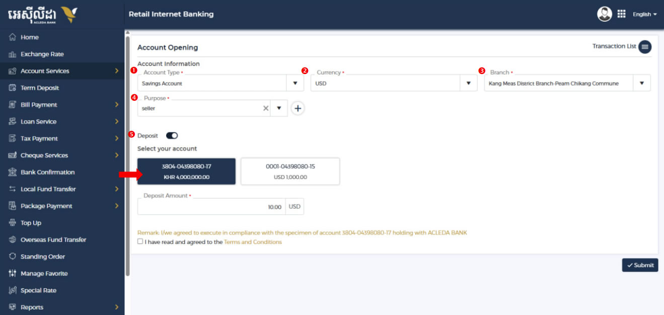 - Confirm your transaction via Hard Token or ACLEDA Authentication App or Web Token