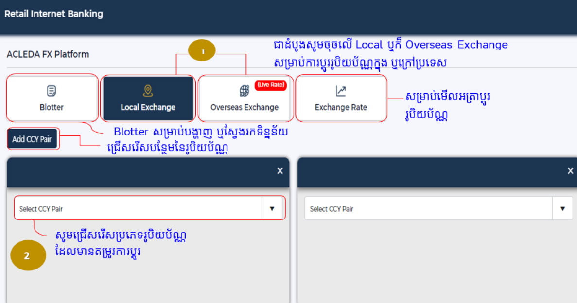 - ជ្រើសរើស "អត្រាប្តូរប្រាក់ក្នុងស្រុក" ឬ "អត្រាប្តូរប្រាក់ក្រៅស្រុក"