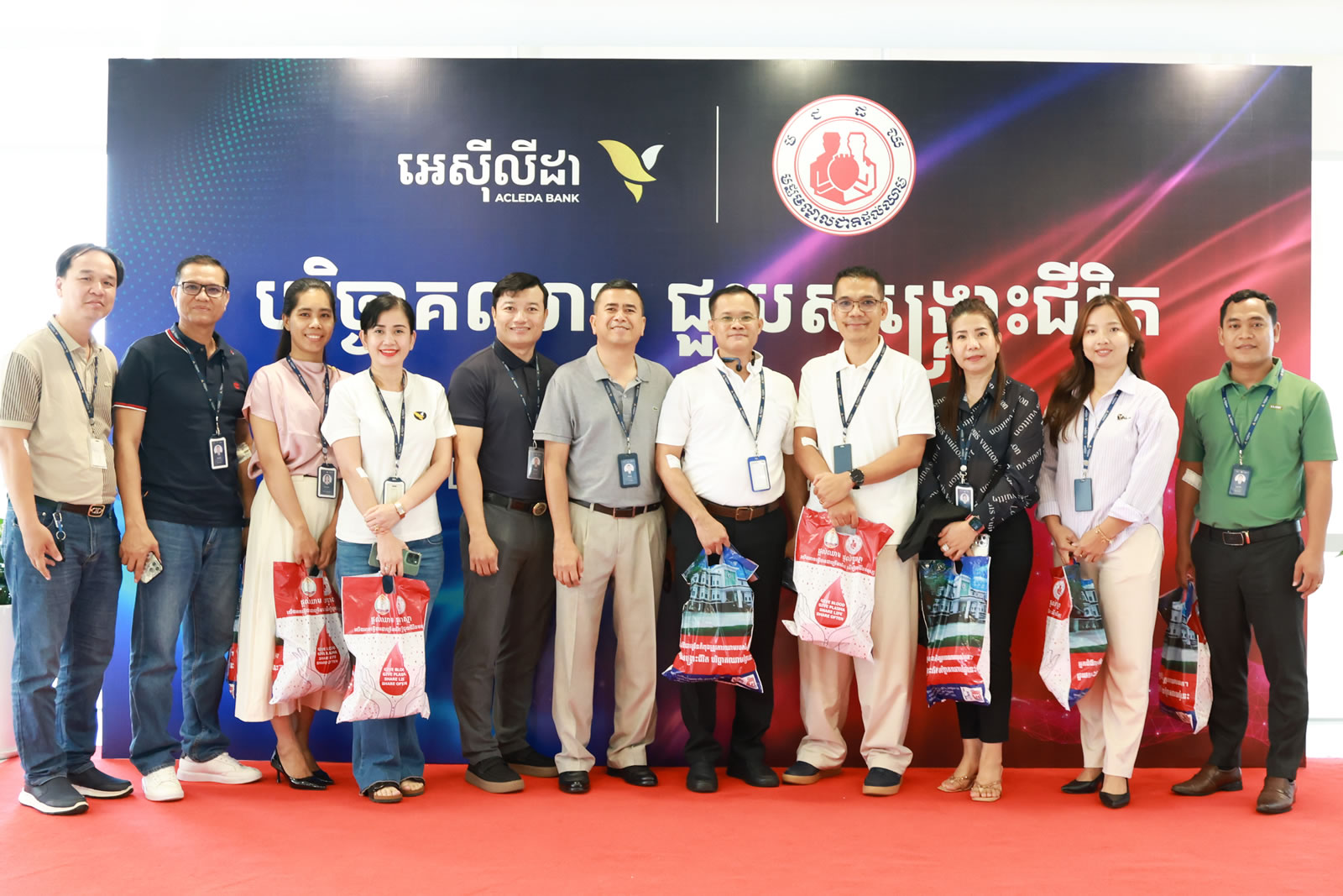 Besides serving and providing financial services, ACLEDA Bank also actively participates in many charitable activities to give back to society. These include voluntary blood donation activities by the management and staff of ACLEDA Bank across the country to save the lives of victims or patients in accidents or illnesses who urgently need blood, in the spirit of Khmer helping Khmer: "One unit of blood from each of us can save a life".