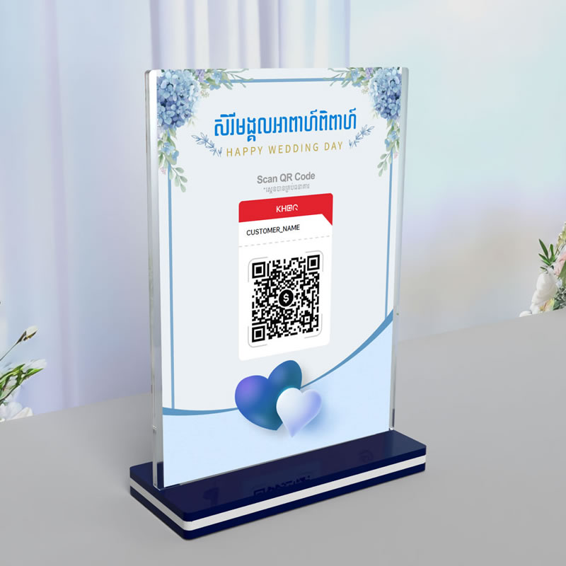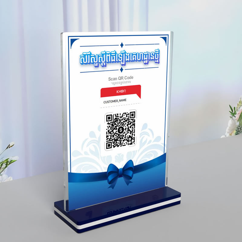 You can download the PDF files below and insert your photo and QR to receive money in the events. If you need new design for your event, please contact the nearest ACLEDA Bank or call: 015 999 233 / 023 994 444.
